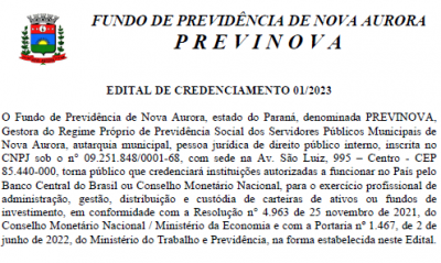 PREVINOVA Informa que está aberto o Edital de Credenciamento nº 01/2023